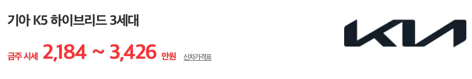 K5 하이브리드 3세대(19년~현재) : 2,184 ~ 3,426 만 원