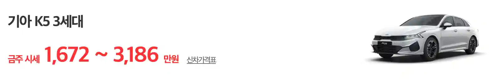 K5 3세대(19년~현재) : 1,672 ~ 3,186 만 원