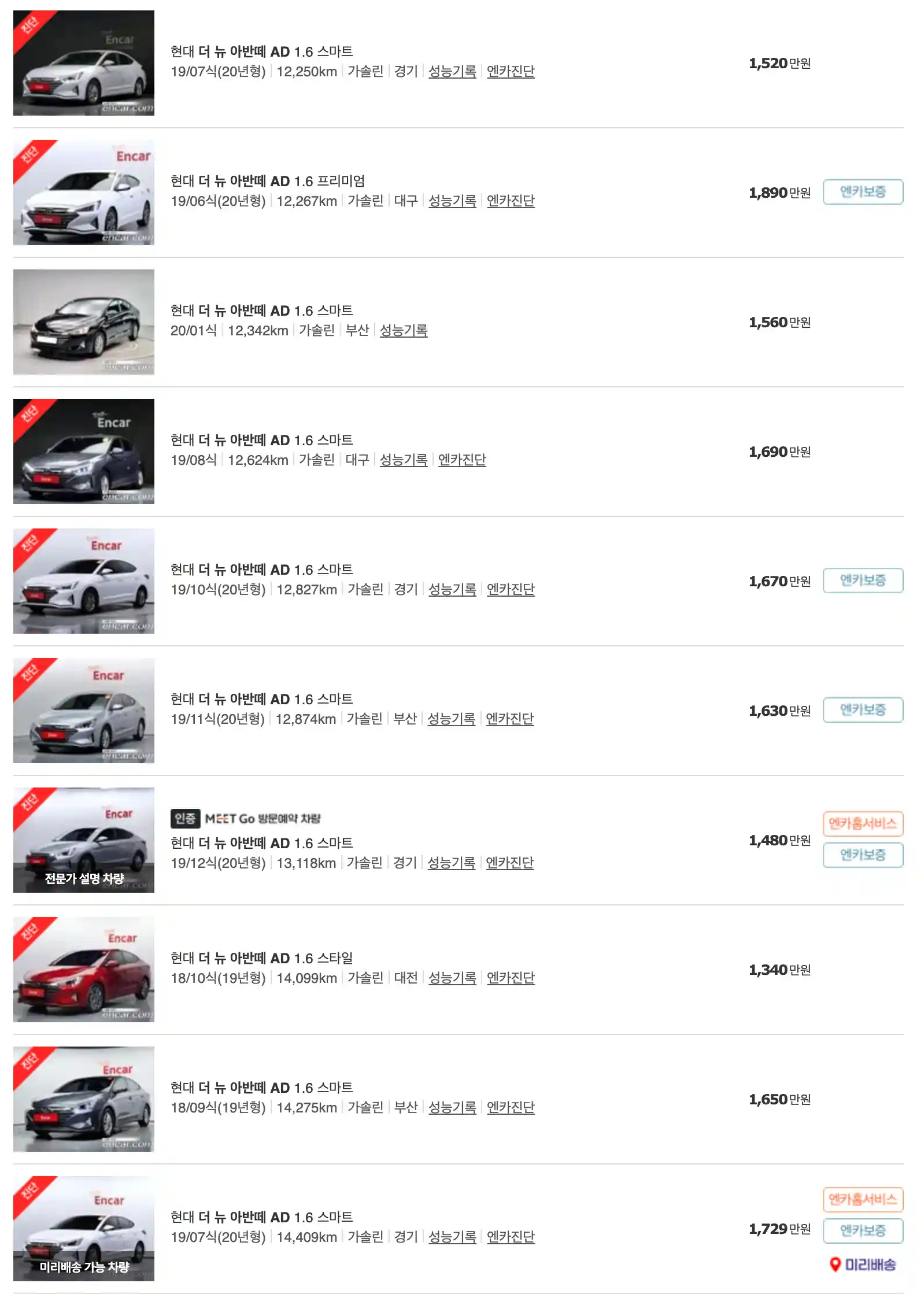 더 뉴 아반떼AD (18 ~ 20년) : 830 ~ 1,758 만 원