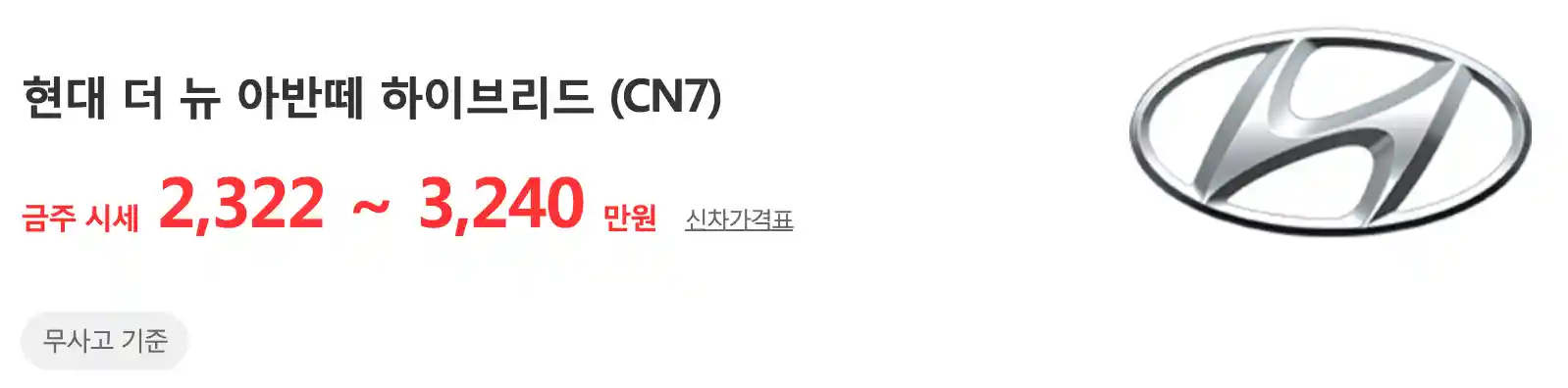 더 뉴 아반떼 하이브리드(CN7) (23년 ~ 현재) : 2,322 ~ 3,240 만 원