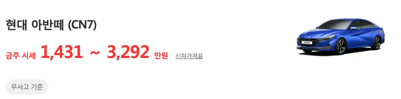 아반떼(CN7) (20 ~ 23년) : 1,431 ~ 3,292 만 원