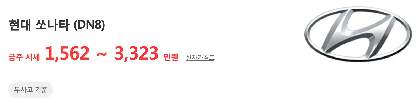 쏘나타(DN8) (19 ~ 23년) : 1,562 ~ 3,323 만 원