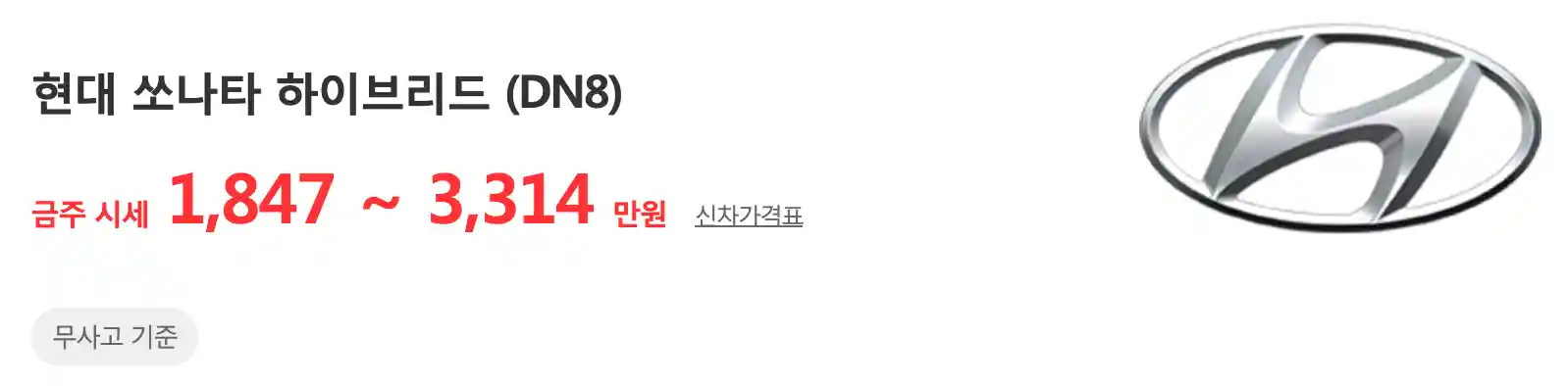 쏘나타 하이브리드(DN8) (19 ~ 23년) : 1,847 ~ 3,314 만 원