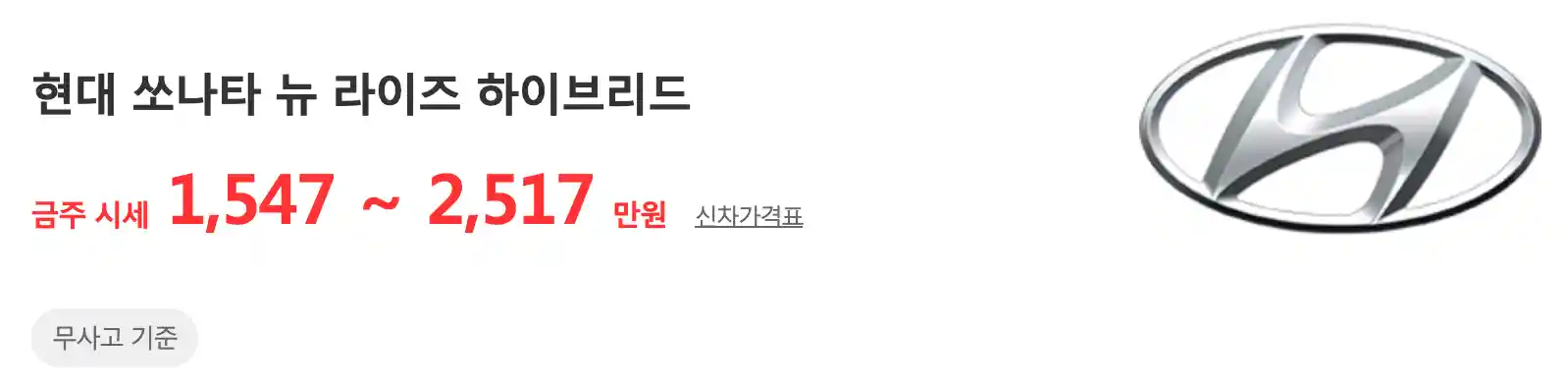 쏘나타 뉴 라이즈 하이브리드 (17 ~ 19년) : 1,547 ~ 2,517 만 원