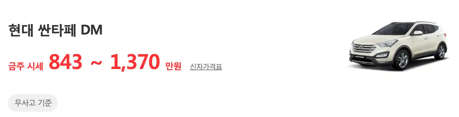 싼타페DM (12 ~ 15년) : 843 ~ 1,370 만 원