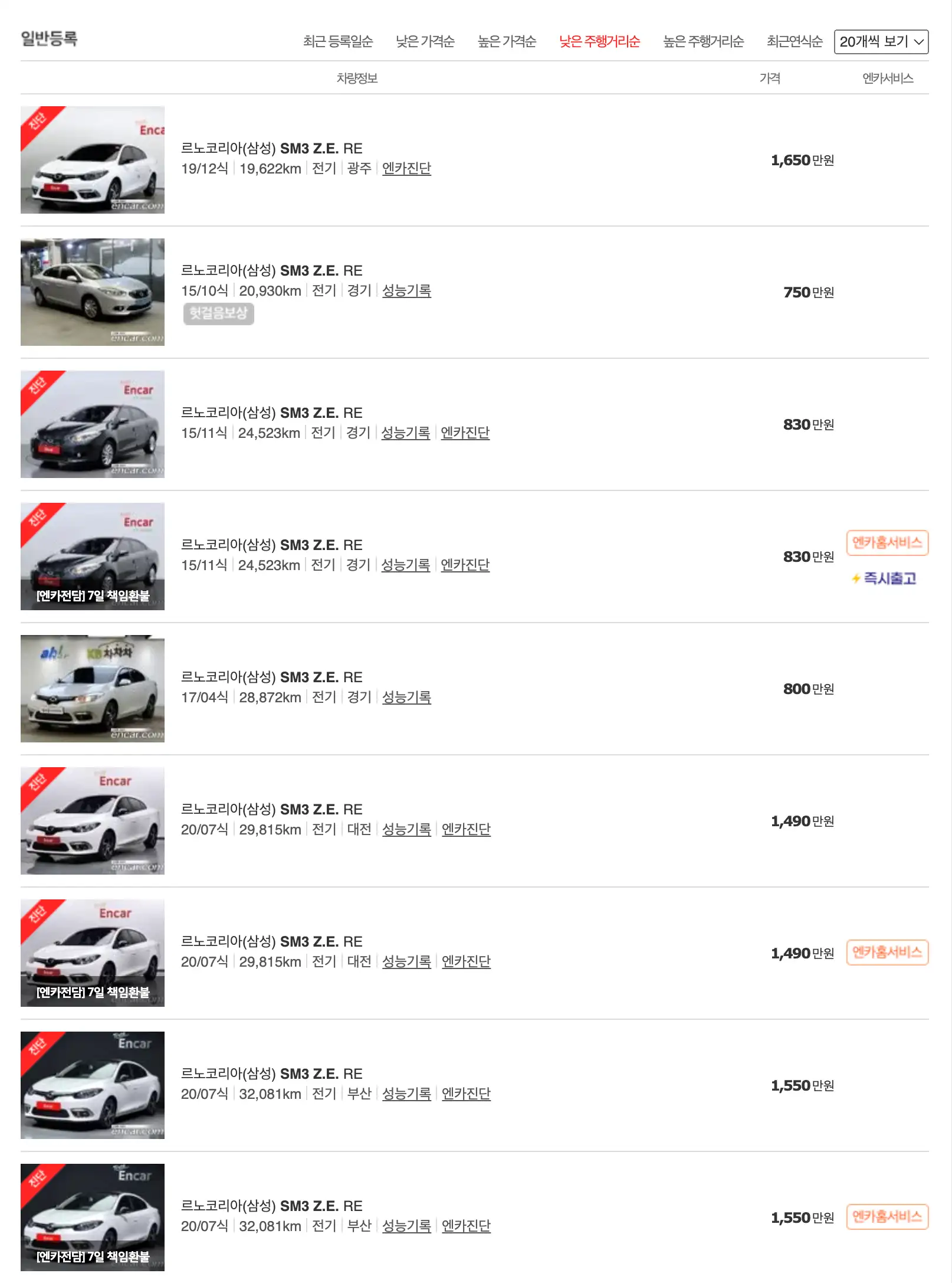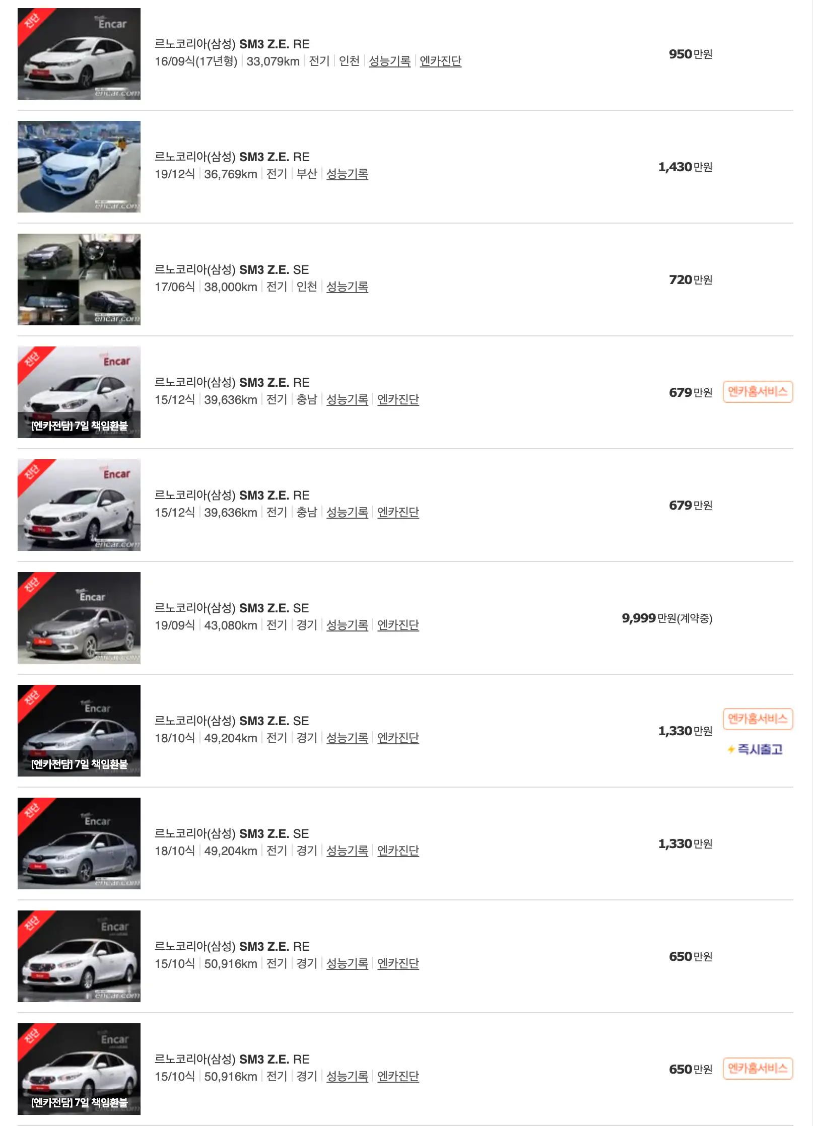 SM3 Z.E (13 ~ 20년) : 388 ~ 1,458 만 원