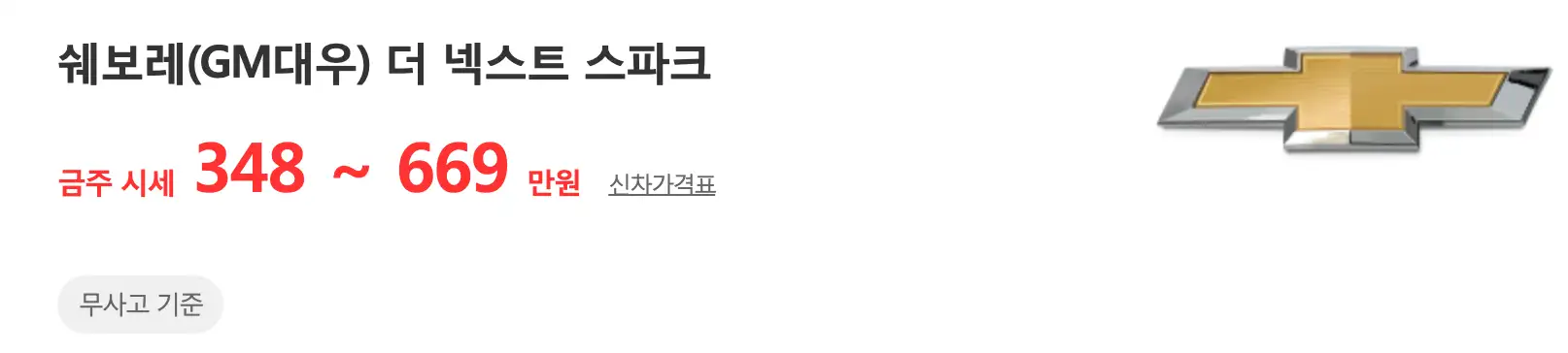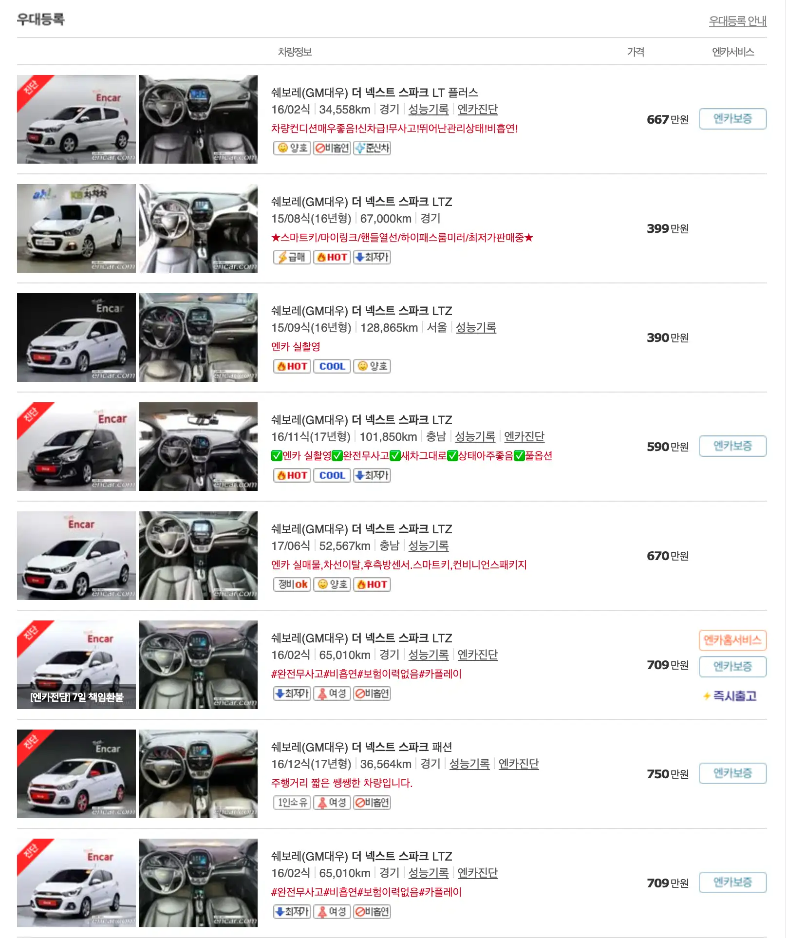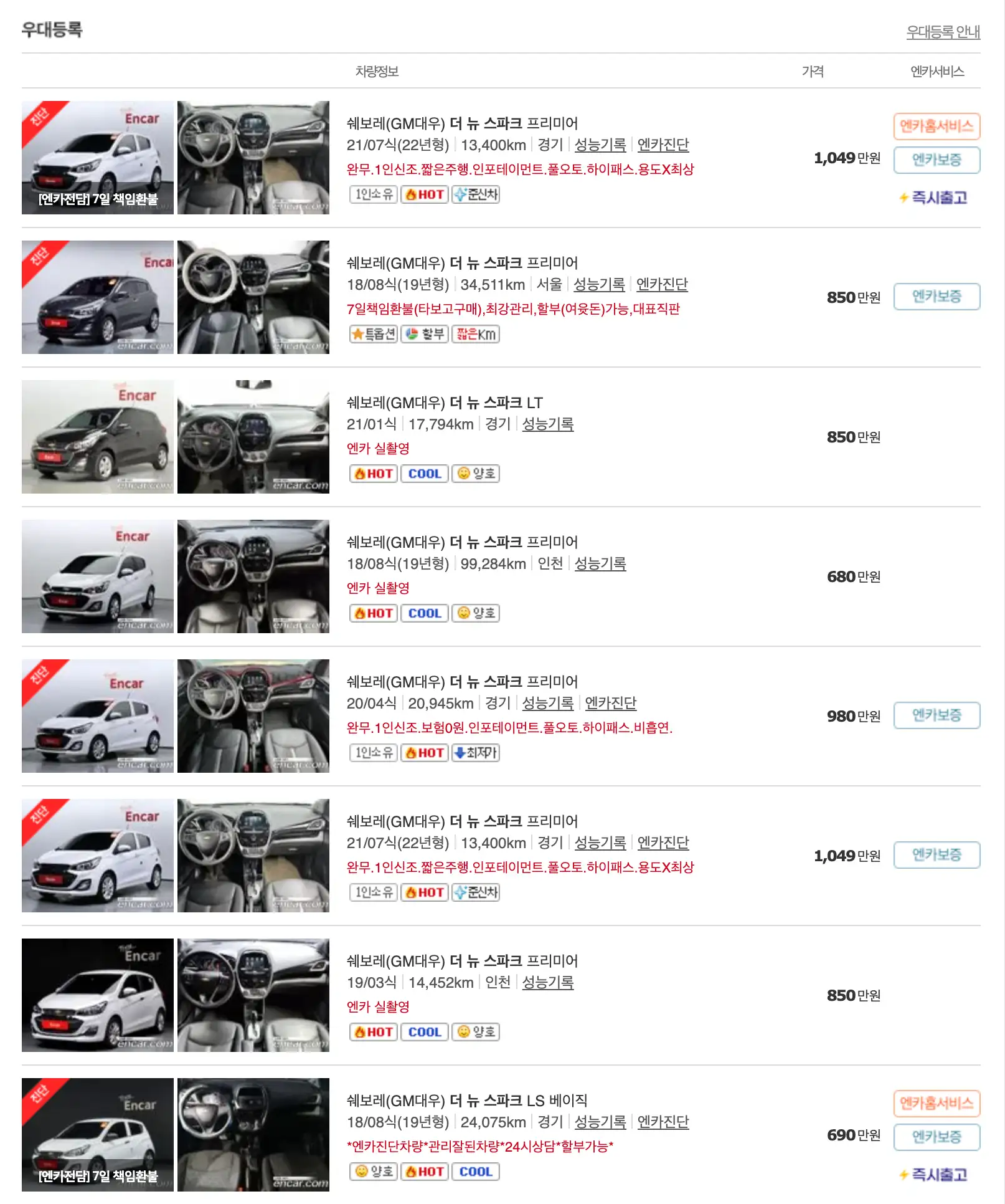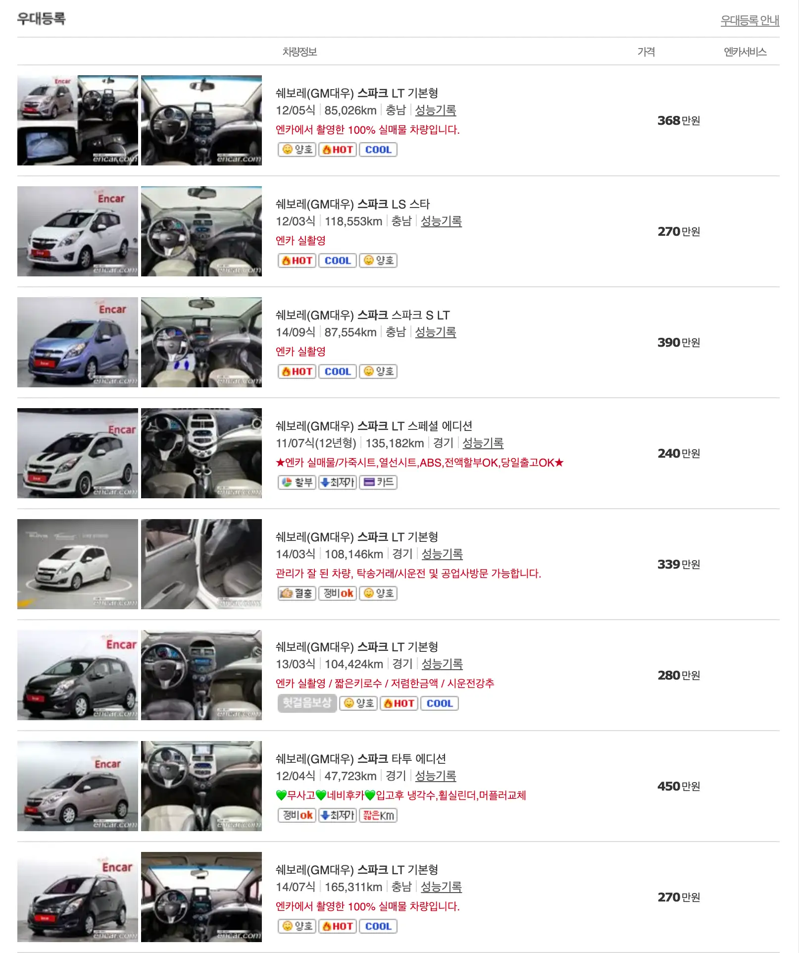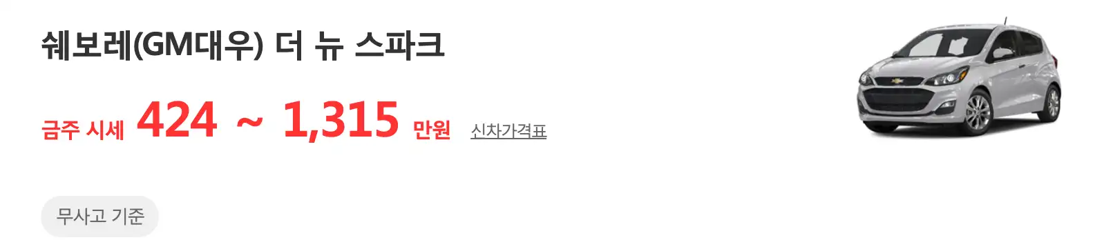 스파크 모델별 중고차 가격